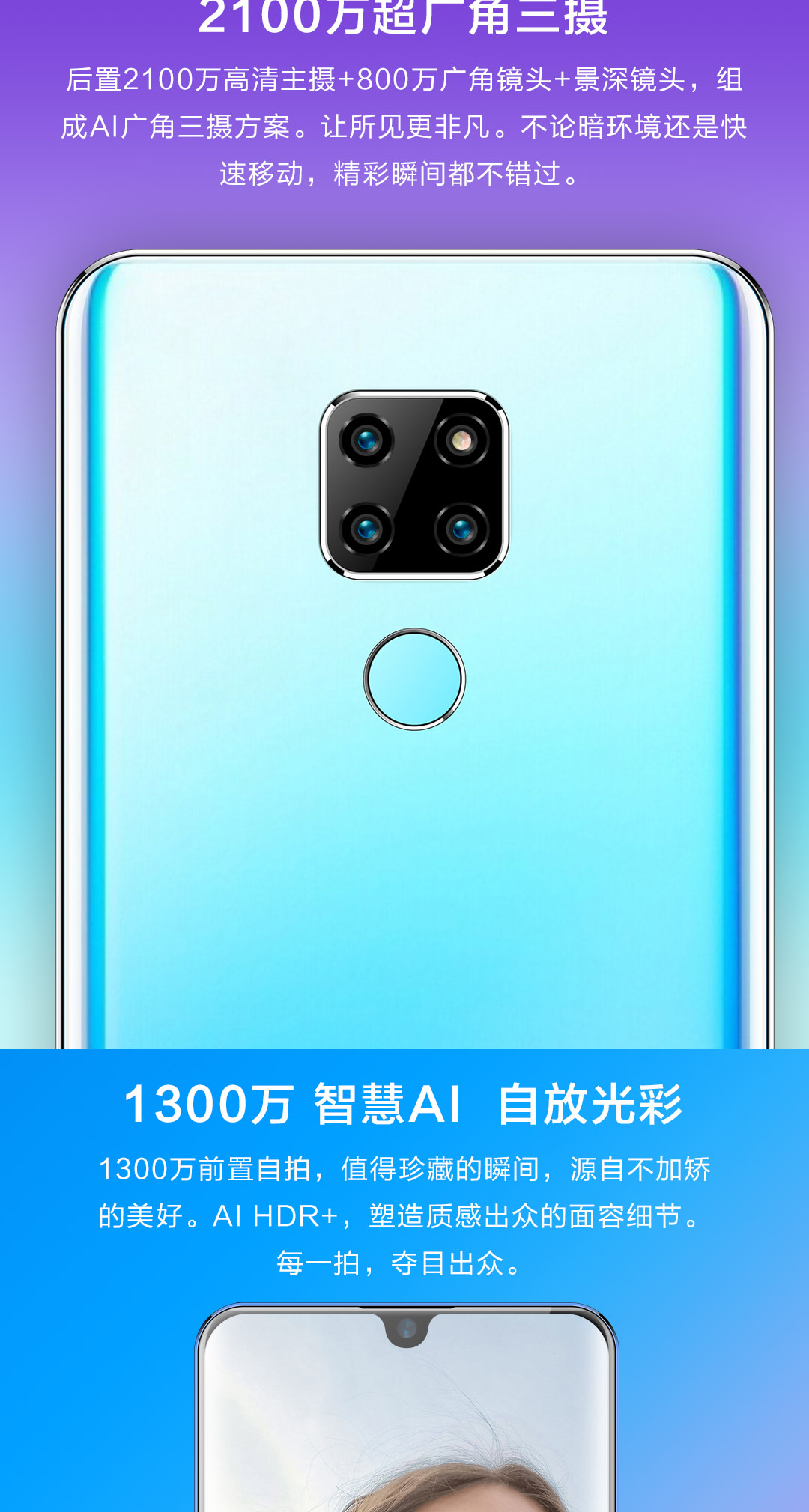 摄像头:后置2100万+800万副摄/前置1300万摄像头